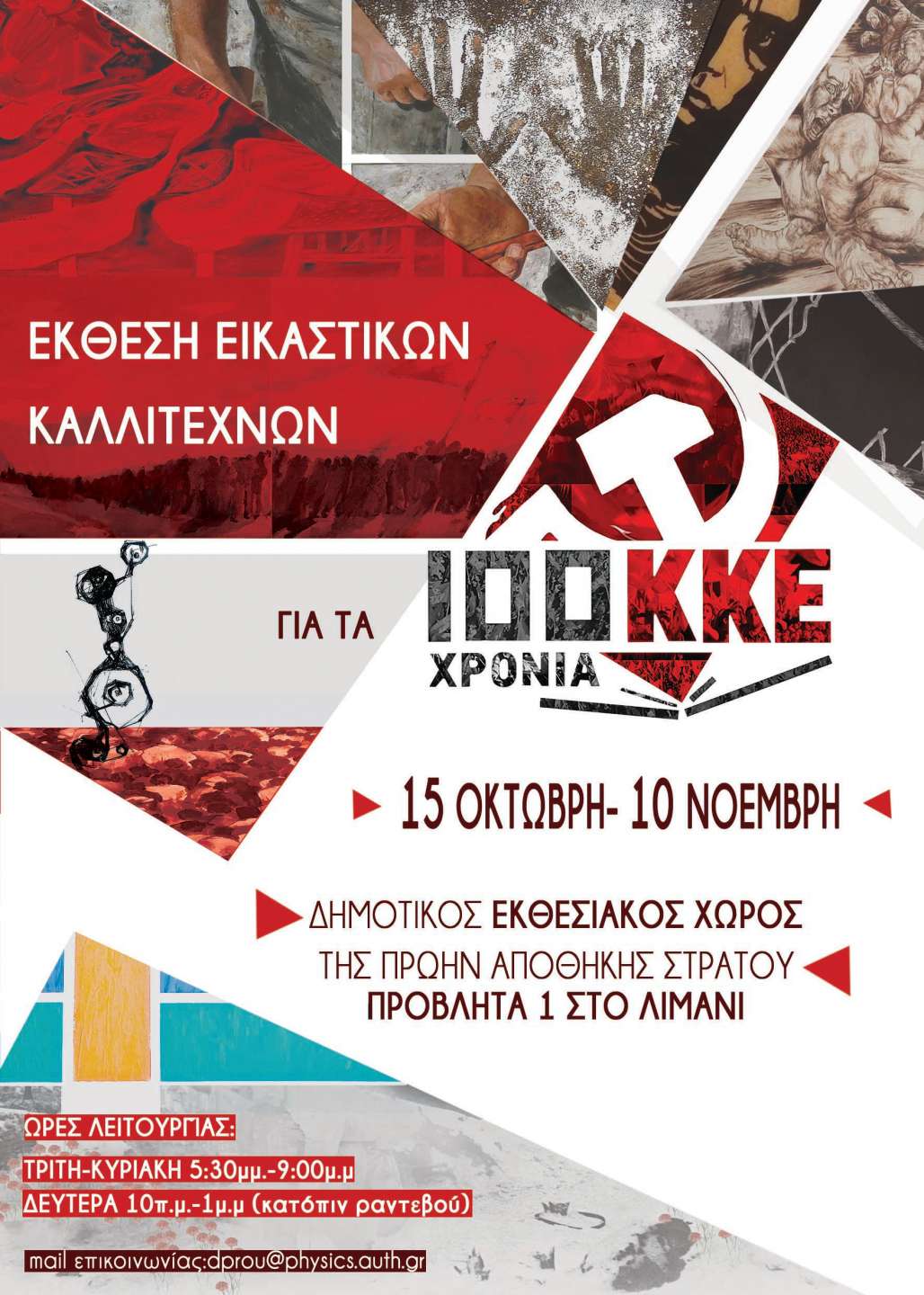 Η έκθεση θα περιλαμβάνει έργα ζωγραφικής, γλυπτικής, χαρακτικής καθώς και σύγχρονων μέσων (μεικτές τεχνικές, εγκαταστάσεις). Οι εκτιθέμενες εικαστικές δημιουργίες αποτελούνται από έργα πρωτότυπα που δημιουργήθηκαν με έμπνευση τα 100 χρόνια του ΚΚΕ καθώς και από έργα που ήδη είχαν φιλοτεχνηθεί και εντάχθηκαν στην έκθεση. Να σημειωθεί ότι οι συμμετέχοντες δημιουργοί επέλεξαν οι ίδιοι το επιμέρους θέμα τους, τα στοιχεία που θεωρούν σημαντικά για να εκφράσουν εικαστικά τη σκέψη τους, με τον δικό τους τρόπο, τη δική τους τεχνοτροπία και τα δικά τους χαρακτηριστικά στο έργο τους, εμπνεόμενοι από τα 100 χρόνια ζωής και δράσης του ΚΚΕ.